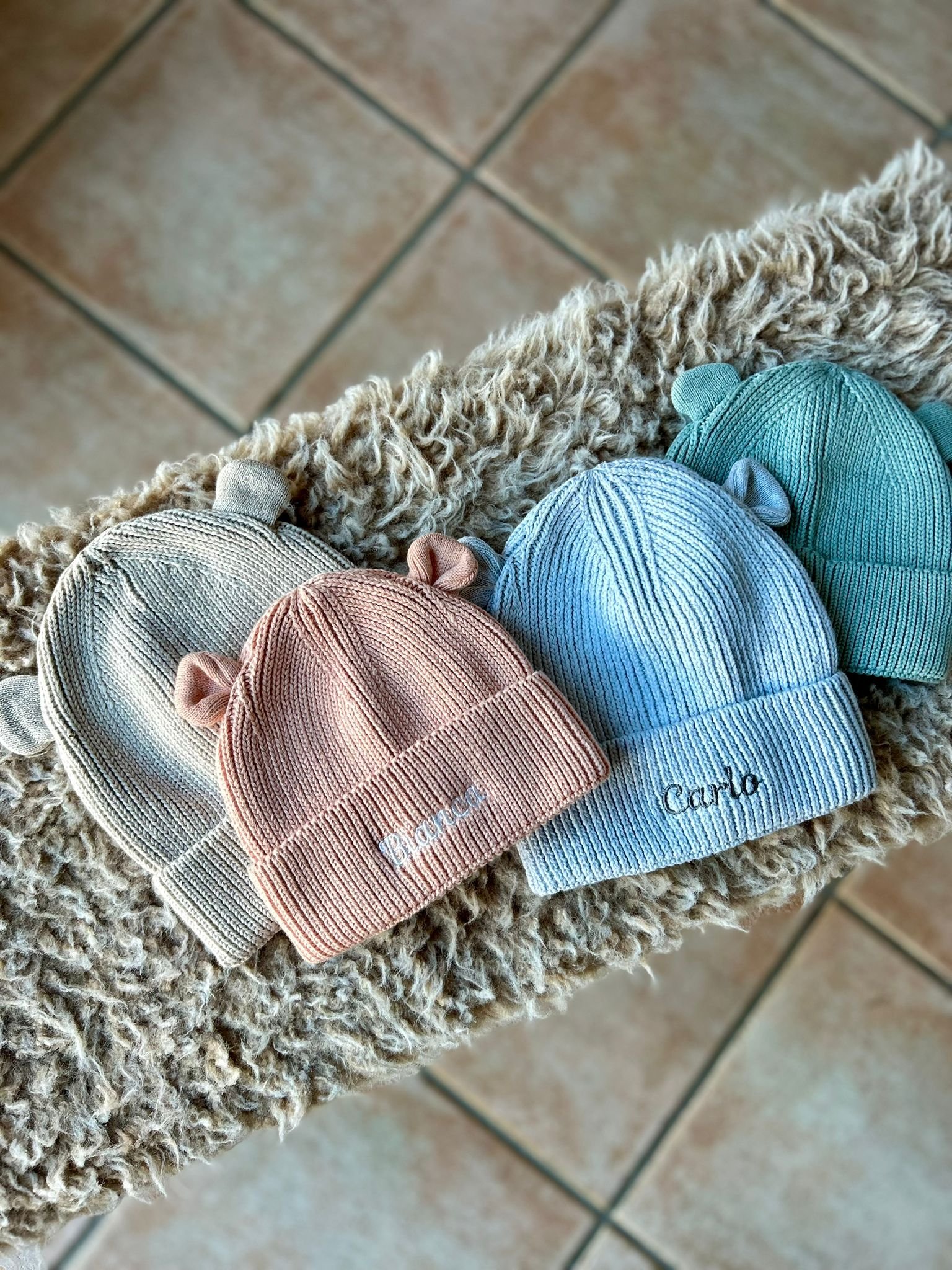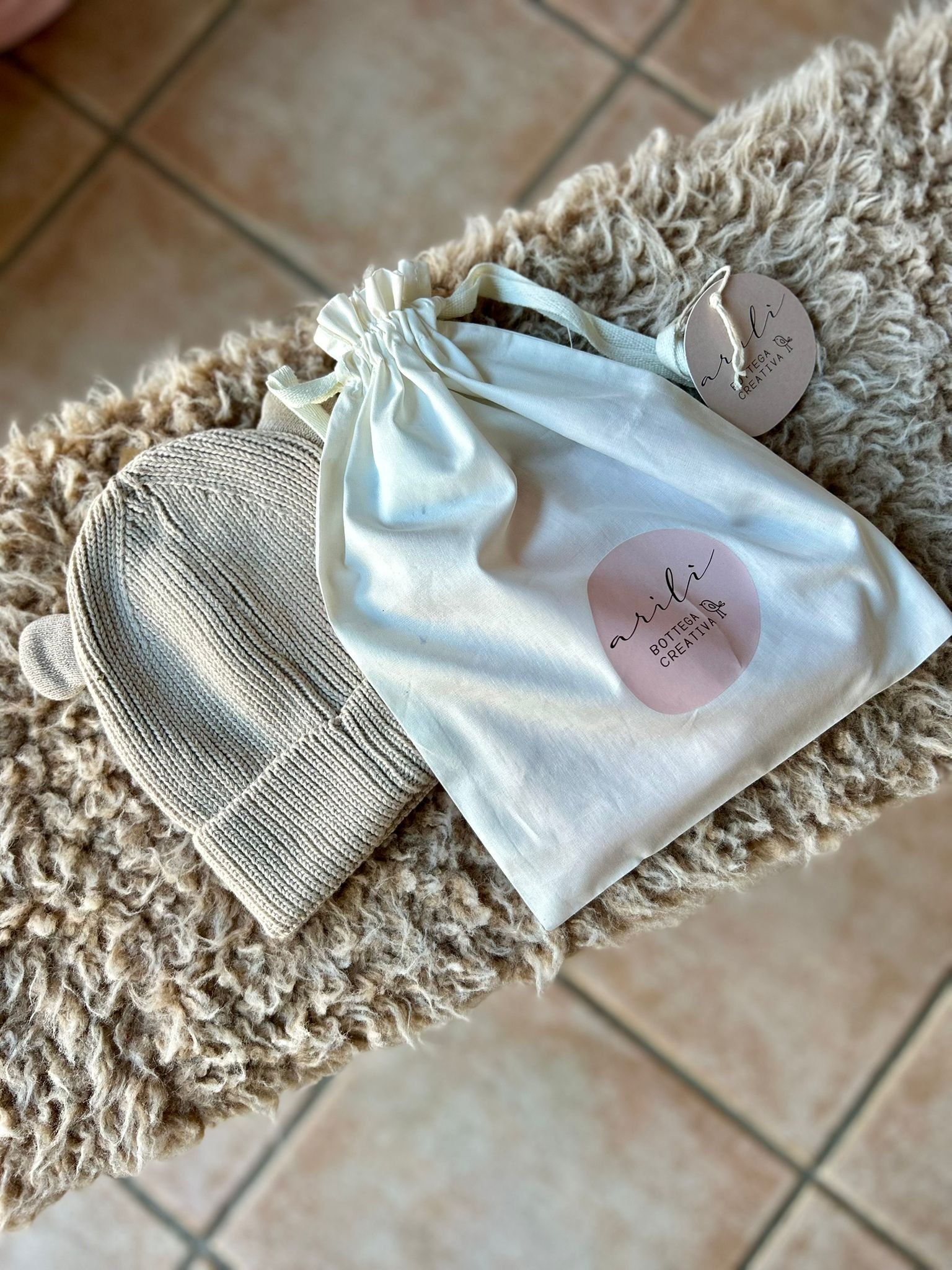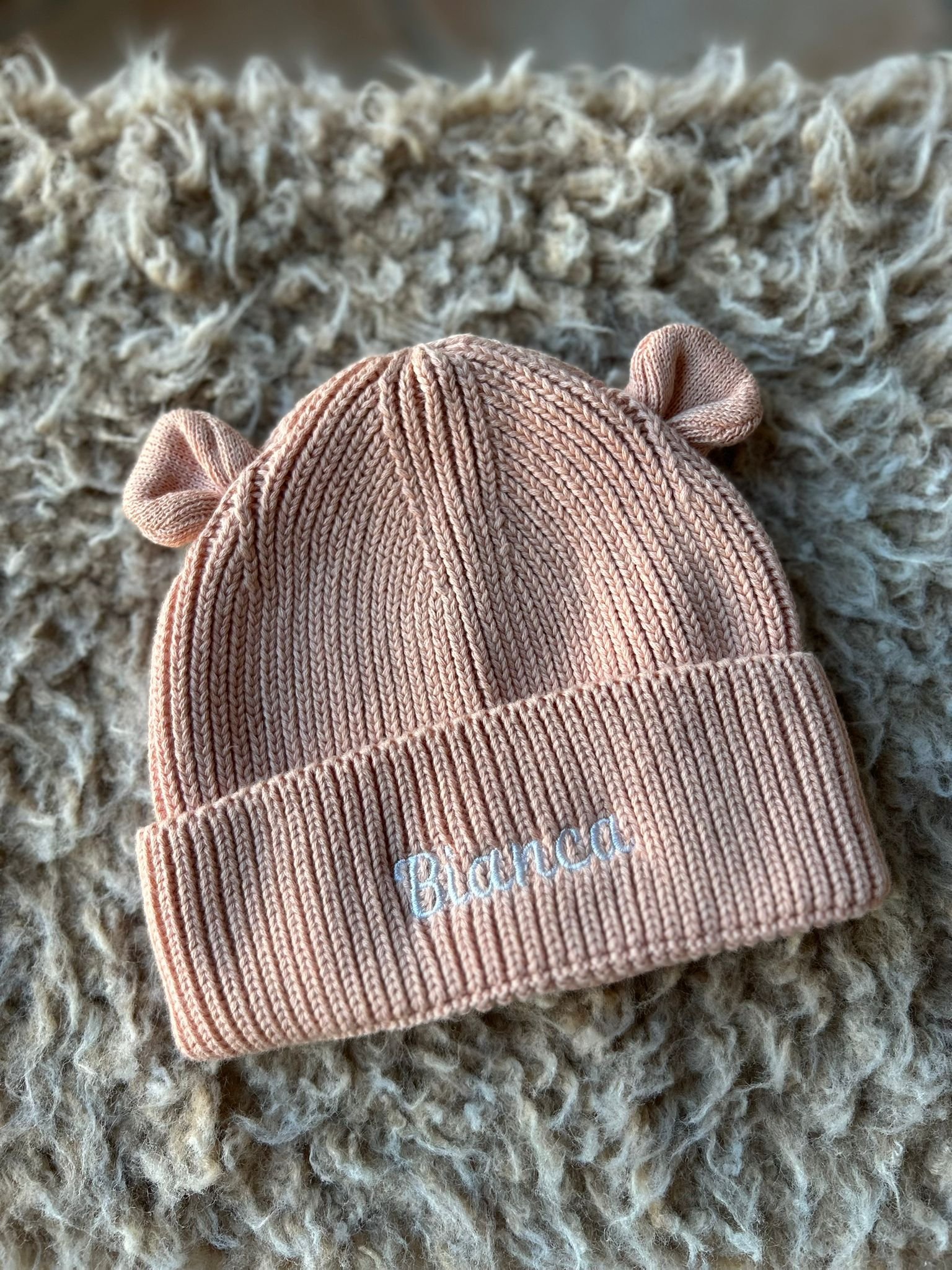Cappellino cotone organico grigio chiaro con orecchie – personalizzato